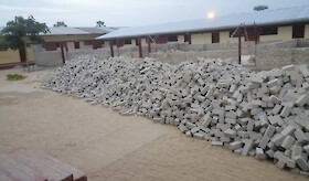 Da die Baustoffe schon alle vorhanden sind, kann der Rohbau Nonstop hochgezogen werden.