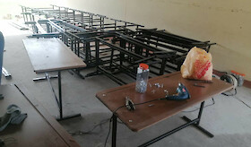 Die Klassenräume werden mit Tischen aus eigener Produktion ausgestattet.